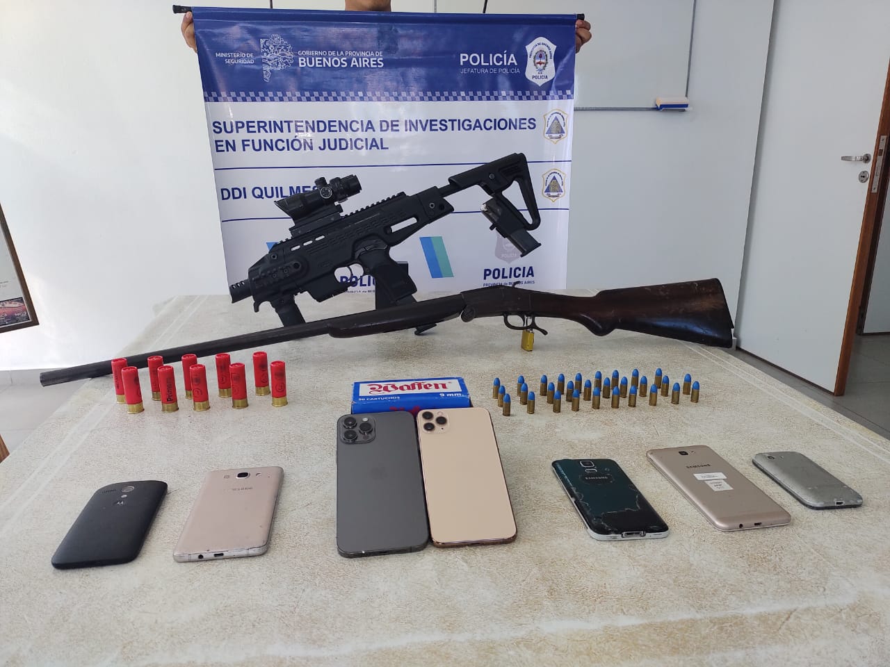 Tras certificar el modus operandi de los dos sujetos identificados y teniendo acreditado su participación, la agente fiscal dispuso realizar siete allanamientos en simultáneo en las ciudades de Quilmes, Varela, Avellaneda y Lomas de Zamora. De los mismos, lograron detener a uno de ellos en Quilmes y otro en Varela. También se secuestraron una Ford F-100 con pedido de secuestro, seis celulares, una pistola Bersa Thunder Pro 9 mm, una escopeta Model GV, 29 municiones calibre 9mm, 10 cartuchos de escopeta calibre 16.