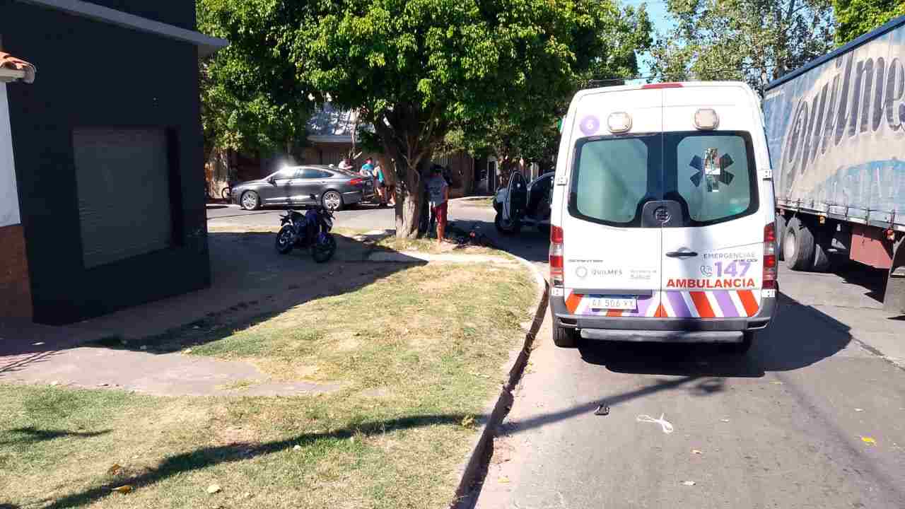 Un accidente de tránsito entre una moto y un auto dejó como saldo dos personas heridas este jueves por la tarde en la intersección de las calles Zola y Primera Junta de Quilmes Este.