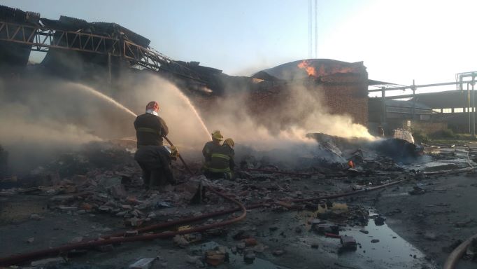 Voraz incendio en la ex papelera Massuh de Solano